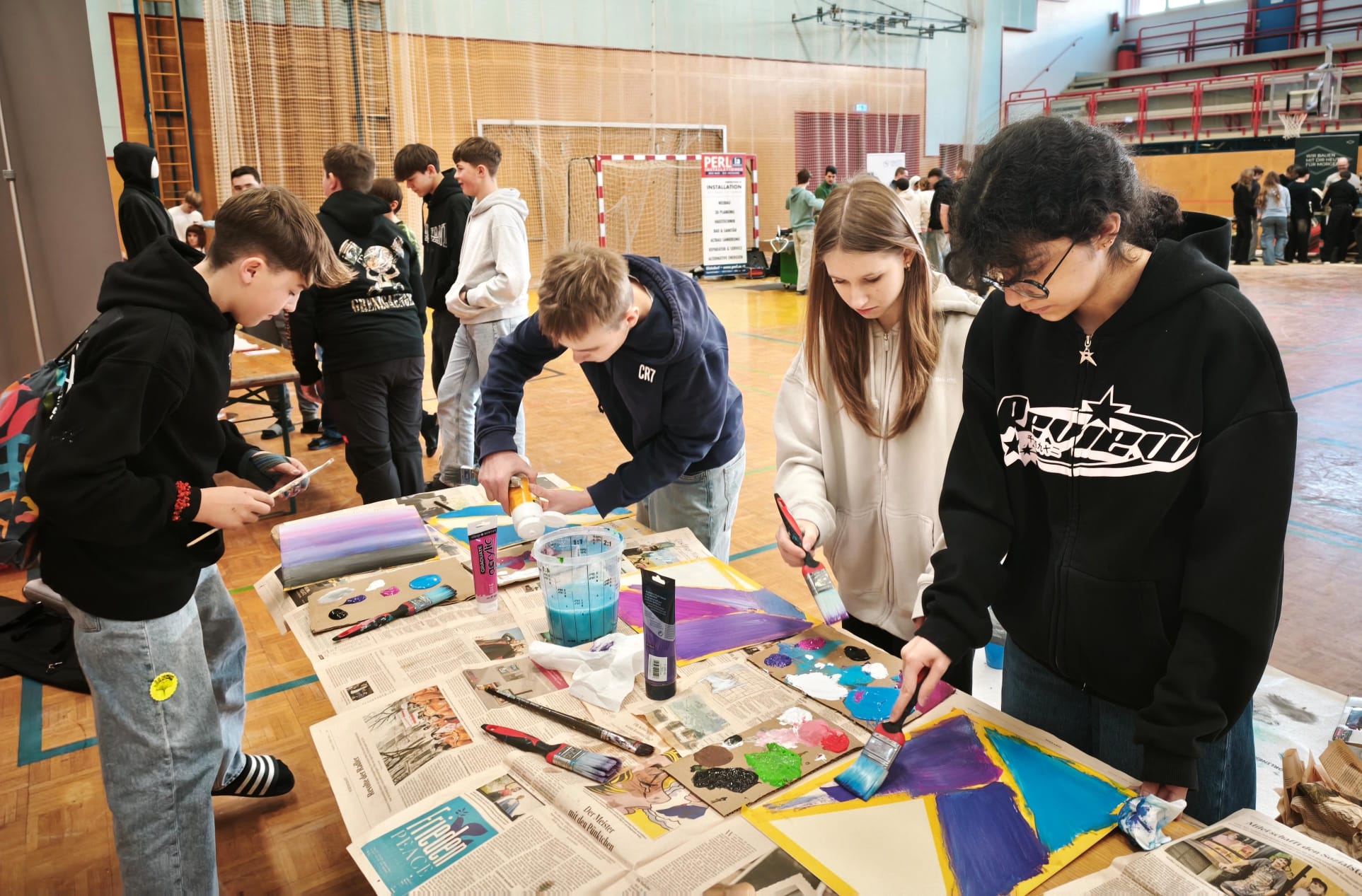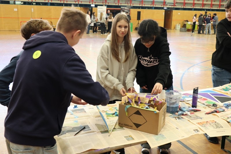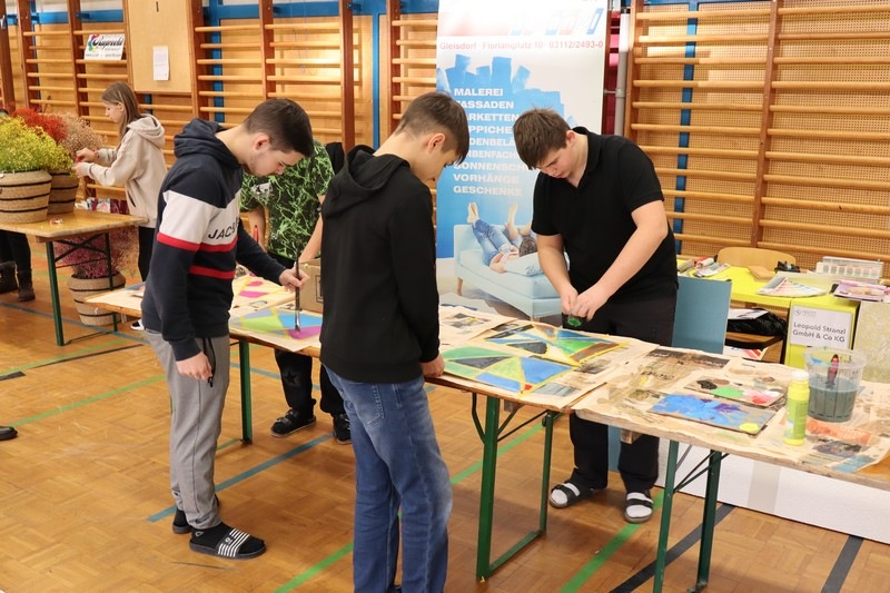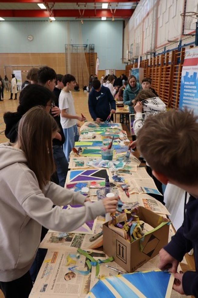 Wir stellten den Beruf "Maler - Funktionsbeschichtungen vor. 66 unterschiedlichen Werkstücke sind dabei an einem Vormittag entstanden.