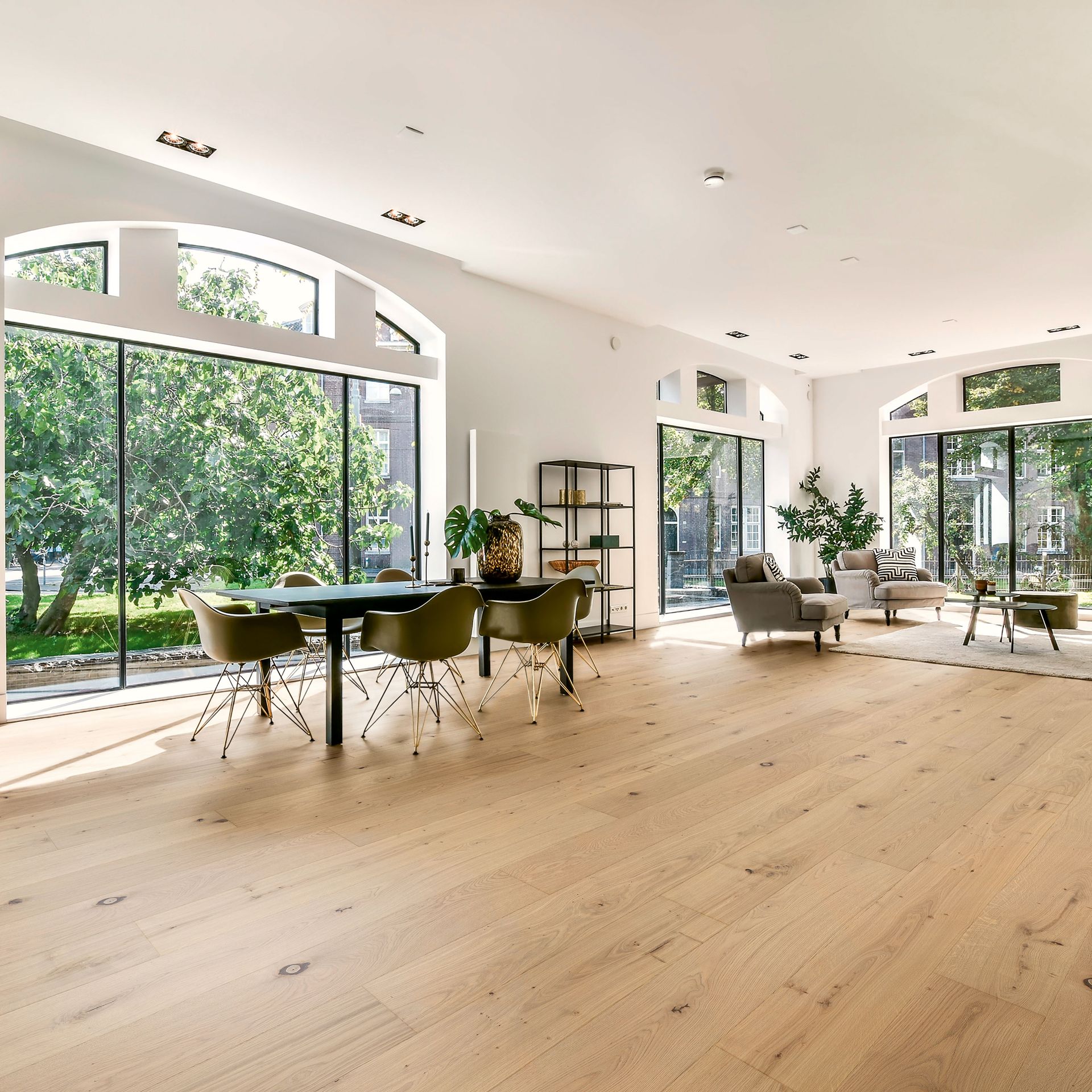 Was die Versiegelung der Oberflächen angeht, gibt es zwar nach wie vor viele lackierte Böden, die Tendenz geht jedoch eindeutig zu den mehrfach geölten Produkten – von hell bis fast schwarz in allen nur erdenklichen Farbspielen.