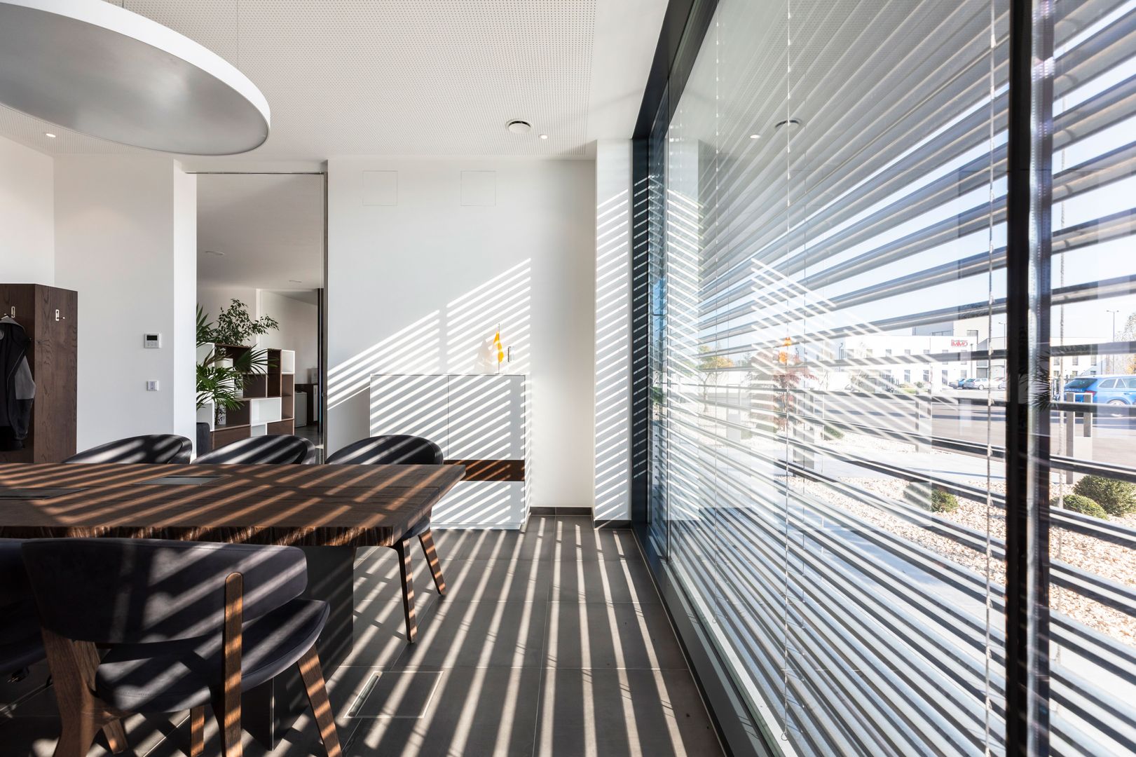 Besonders bei großflächigen Fenstern mit und transparenter Architektur eignen sich Raffstores besonders gut, denn die Lamellen reflektieren sowohl das Licht als auch die Wärmestrahlen. Dadurch wird das Aufheizen der Räume um bis zu 75 % verhindert. Die fein zu justierenden Verstell-Optionen ermöglichen eine ausgewogene Harmonie zwischen Lichteinfall und Sichtschutz – und garantieren somit auch immer die perfekte Privatsphäre. Auch als Designelement machen Raffstores als elegante Gestaltungselemente mit hoher Funktionstauglichkeit eine gute Figur.