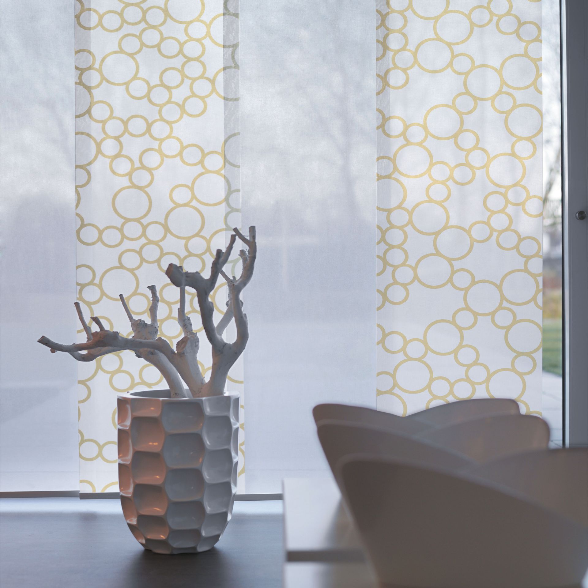 Wie sieht der Vorhang 2.0 aus? Man könnte auch sagen: Innovative Formensprache. Traditionelle Idee. Weniger ist einfach mehr beim Flächenvorhang. Denn er integriert sich perfekt in avantgardistische Architekturkonzepte, macht sich nicht wichtiger als er ist – und kann gleichzeitig als moderne Wand- und Frontgestaltung ein wichtiges Gestaltungselement mit paralleler Beschattungsfunktion darstellen. Beim Flächenvorhang werden großflächige Stoffpaneele exakt nach Ihren Wünschen gestaltet und in leichtgängigen Schienen in verschiedenen Materialien und Gestaltungsvarianten montiert. Diese Paneele lassen sich dank des Schiebesystems beliebig stufenlos seitlich verschieben und hintereinander stapeln. Ein abwechslungsreiches Spiel mit Licht, Schatten, Ein- und Ausblicken ist garantiert!