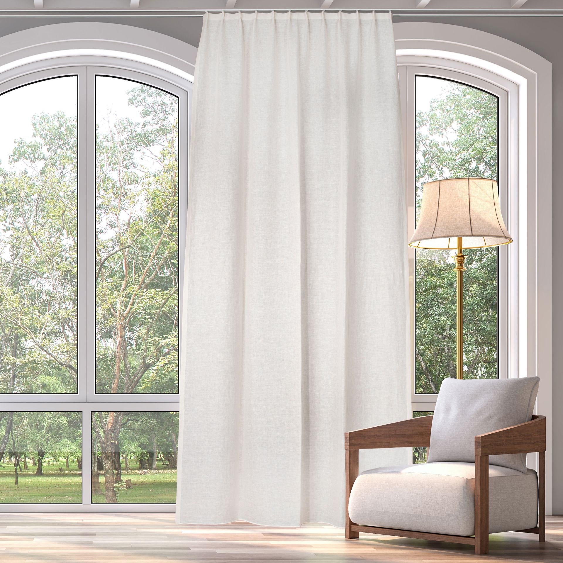Raumhohe Vorhänge schweben entweder knapp über dem Boden oder liegen auf. Die schwebende Variante lässt sich besser sauber halten. Die aufliegende Gardine gibt einem Raum einen lässigen Chic, ist aber beim Staubsaugen oder Wischen unpraktisch.